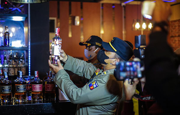 Bima memberikan peringatan kepada para pengelola tempat-tempat penjualan minuman beralkohol yang kedapatan menjual miras dengan kadar alkohol di atas lima persen. Pengelola akan diberi peringatan dan minuman beralkoholnya disita. “Apabila ketika sidak lagi dan ditemukan, ya pasti akan kita tutup. Kita segel,” tegas Bima ketika melaksanakan sidak izin minuman beralkohol ke sejumlah kafe beberapa waktu lalu. Sekaligus pada sidak itu dipantau pelaksanaan prokes covid-19 di beberapa café dan restoran.