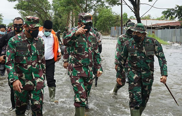Panglima TNI Marsekal TNI Hadi Tjahjanto, S.I.P., meninjau langsung lokasi bencana banjir di Kabupaten Tanah Laut Kalimantan Selatan, Sabtu (16/01/2021).