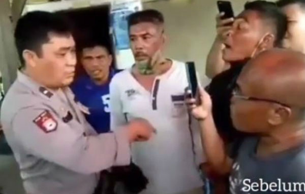 Dalam video yang diunggah akun Instagram @infosigap, terlihat seorang polisi dikerumuni banyak orang. Di antara mereka diketahui sebagai preman.