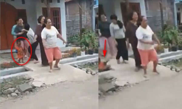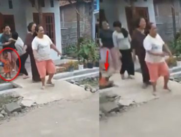 Emak-Emak Senggol Bocah Sampai Nyemplung Got