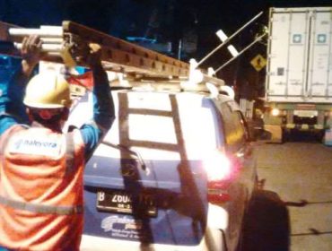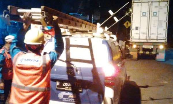 Truk Kontainer Bermuatan Produk Obat-obatan Tersangkut Kabel Listrik